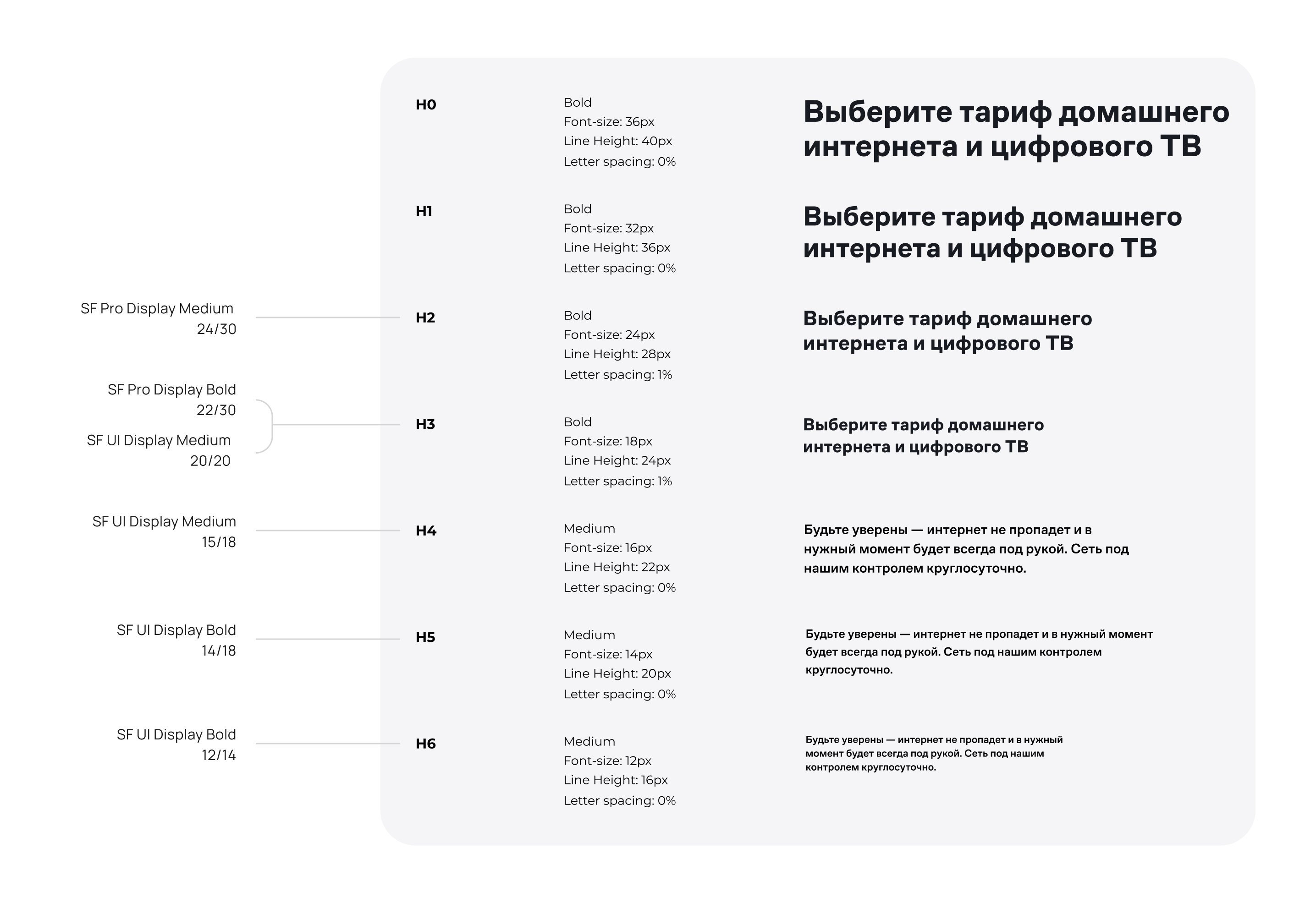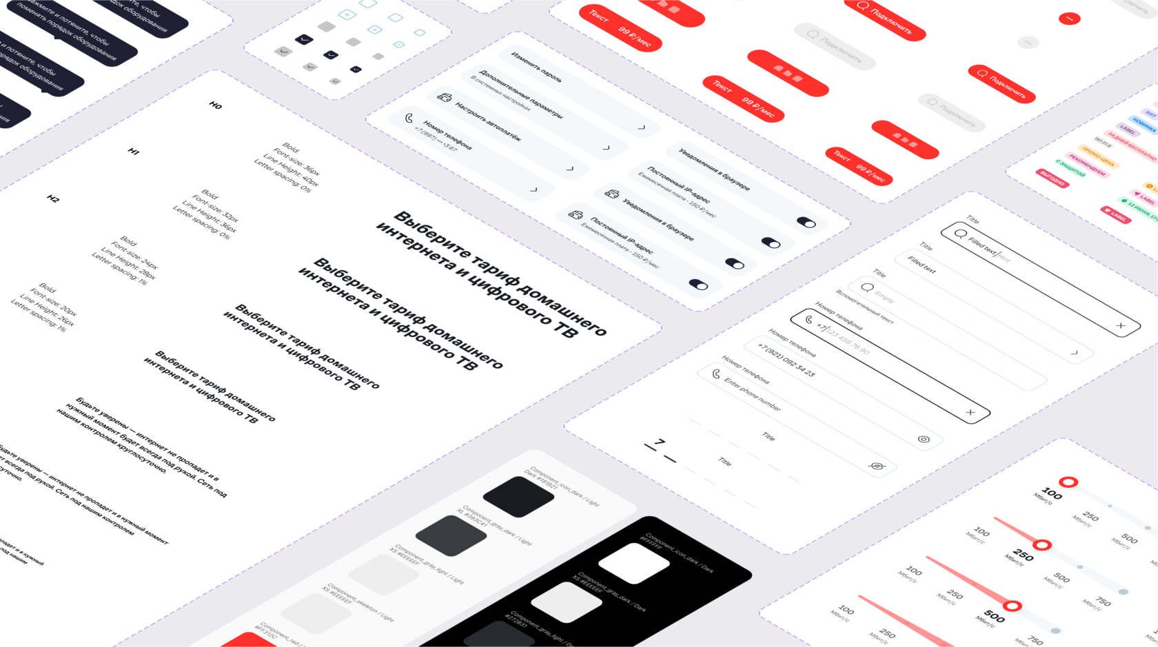 Dom.ru design system has been in existence for several years, and a large number of designers at different levels have worked on it. At the same time, there has never been a designer defining the vector of development and guiding other designers. Moreover, brand changes required a new approach to structure to implement changes as quick as possible.